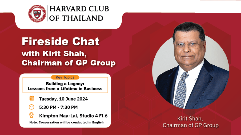 Dear Harvard Club of Thailand Member, Please join us to our Fireside Chat with Kirit Shah, the chairman of GPContinue Reading